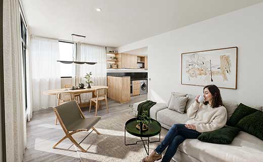 Living y dormitorio piso flotante